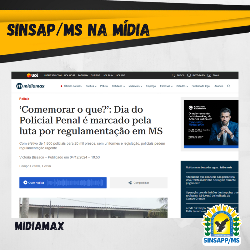 O presidente do Sinsap-MS (Sindicato dos Servidores da Administração Penitenciária) explica que não há nada para comemorar. Isso porque, em 2019, foi criada a Polícia Penal na Constituição, e cada estado ficou responsável por regulamentá-la, contudo, cinco anos depois, essa regulamentação é inexistente em Mato Grosso do Sul. “A nossa proposta foi entregue há dois anos e o estado não conseguiu formular nenhum tipo de artigo para que pudéssemos discutir com eles”.
