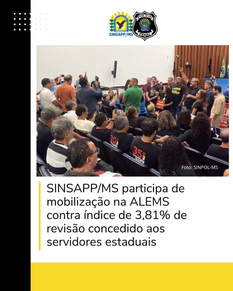Mobilização dos Servidores Públicos: SINSAPP/MS convoca policiais penais para ato na ALEMS em defesa da valorização e reposição salarial