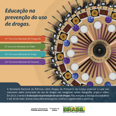 Brasília (DF) - A Secretaria Nacional de Políticas sobre Drogas do Ministério da Justiça (Senad/MJ) está com inscrições abertas até 10 de maio para os concursos de cartazes, fotografias, vídeos, música e monografia com o tema A Educação na Prevenção ao Uso de Drogas.