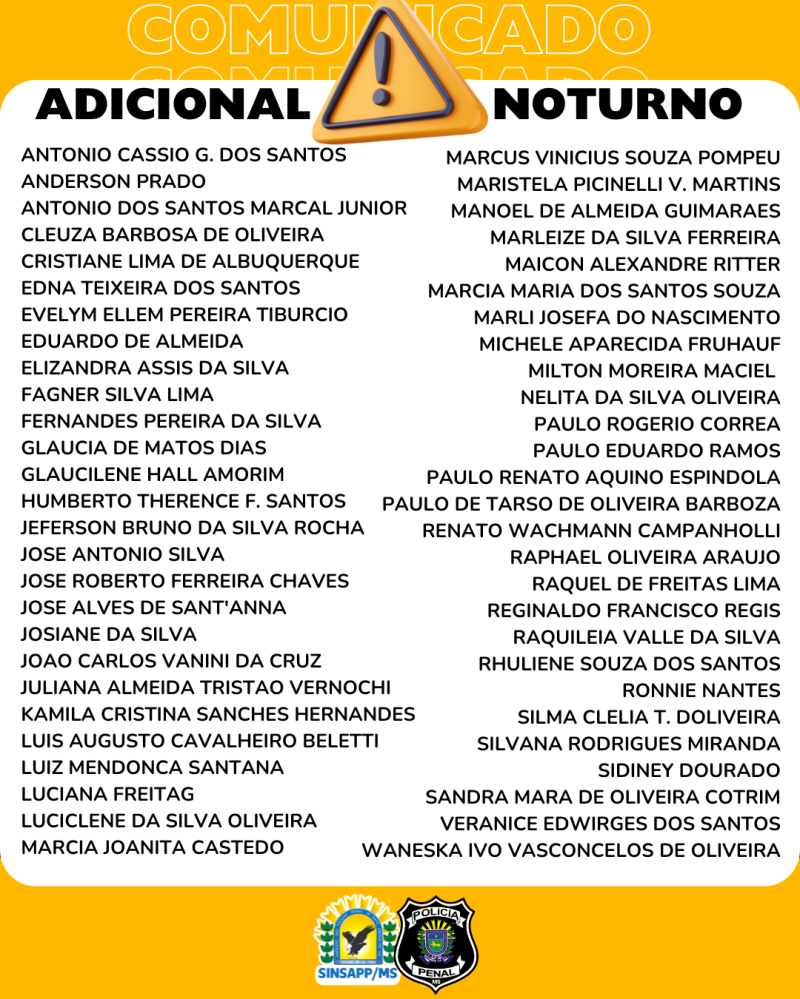 Confira a relação com nomes de servidores. Se o seu nome estiver na relação, entre em contato pelo WhatsApp com o jurídico do sindicato (67-999769829), com URGÊNCIA!