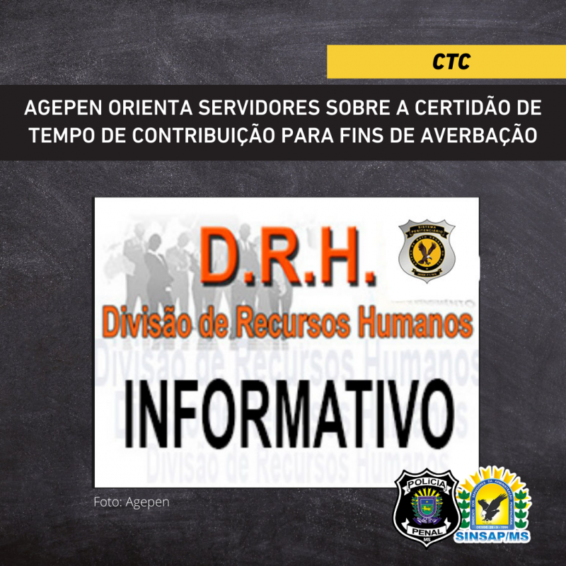 Policial Penal, a Divisão de Recursos Humanos da Agepen orienta que os servidores façam a solicitação da Certidão de Tempo de Contribuição (CTC) ao Instituto Nacional de Seguridade Social (INSS), para fins de averbação de tempo de serviço.