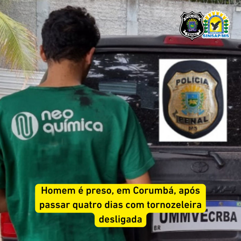 Na última semana, um homem de 26 anos foi preso pela Polícia Penal em Corumbá após passar quatro dias com a bateria da tornozeleira eletrônica desligada.