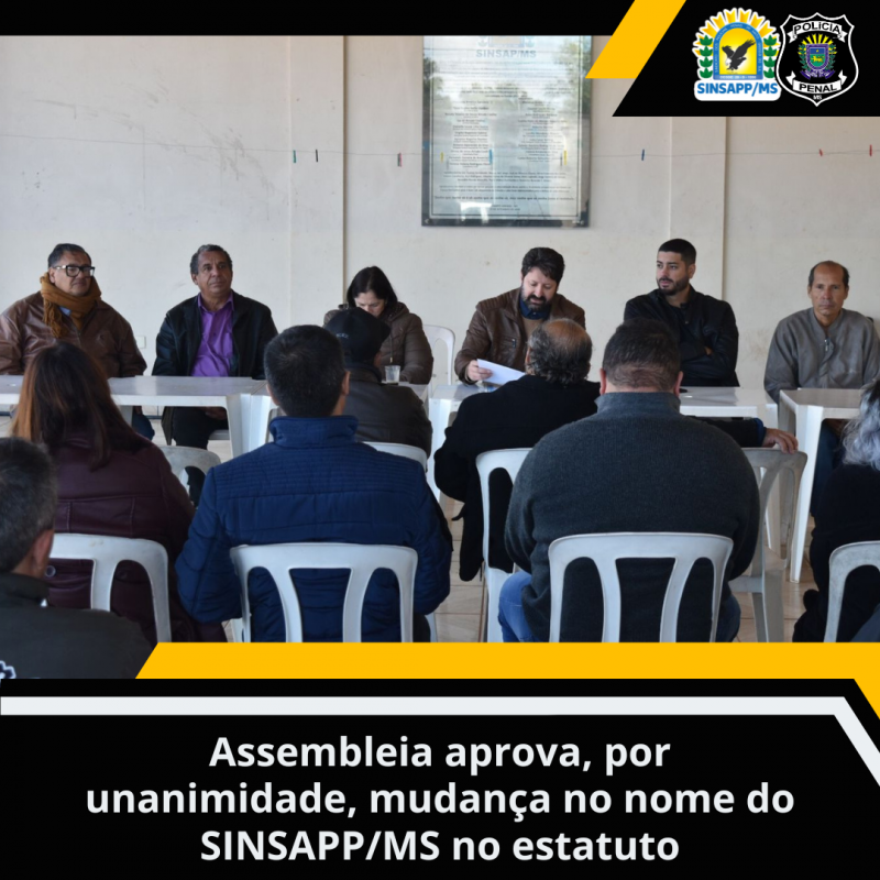 A Assembleia Geral realizada, nesta sexta-feira (16), aprovou por unanimidade a mudança do nome do SINSAPP/MS, no estatuto. Com a mudança, o Sindicato passa a se chamar oficialmente Sindicato dos Policiais Penais do Estado de Mato Grosso do Sul.