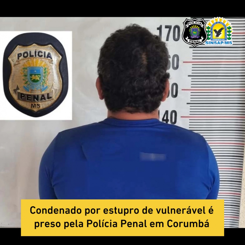 Segundo o jornal Folha MS, um homem de 51 anos, que possui condenação de oito anos de prisão pelo crime de estupro de vulnerável, foi preso na manhã desta quarta-feira, 01 de junho, por integrantes da Polícia Penal de Corumbá. Ele era considerado foragido da justiça por descumprir as determinações impostas para o cumprimento da pena por meio do monitoramento eletrônico.
