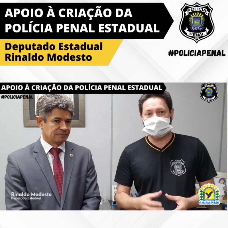 O Deputado Estadual Rinaldo Modesto garantiu o apoio à luta da categoria, e também ressaltou a necessidade do projeto para o Estado. “Já alcançamos várias conquistas, mas o projeto da criação da polícia penal é fundamental para o Mato Grosso do Sul, assim como foi conquistado em outros seis estados brasileiros”, explica.