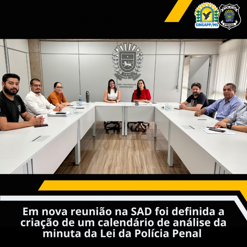 Na nova reunião do SINSAPP/MS com a SAD, nesta quinta-feira (7), para discutir a minuta da Lei da Polícia Penal foi estabelecido que será elaborado um calendário para análise do material.