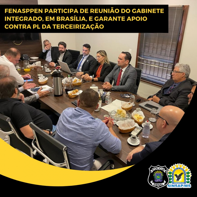 No Gabinete Integrado, foi elaborado um pacote das demandas da segurança pública. "Aproveitamos esse mecanismo para discutir a questão da terceirização da nossa atividade e solicitar apoio das outras entidades. Hoje, a terceirização é um problema da Polícia Penal, mas, depois, pode atingir as outras forças de segurança. Diante dos riscos que a proposta traz, as outras entidades já confirmaram apoio à Polícia Penal", destacou o presidente do SINSAPP/MS, André Luiz Santiago, após a reunião.