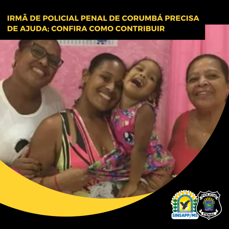 A irmã do Policial Penal Carlos Henrique de Assis Martins, Juliane Cristina de Assis Martins, precisa de ajuda. Ela sofreu um AVC (Acidente Vascular Cerebral) e está acamada.