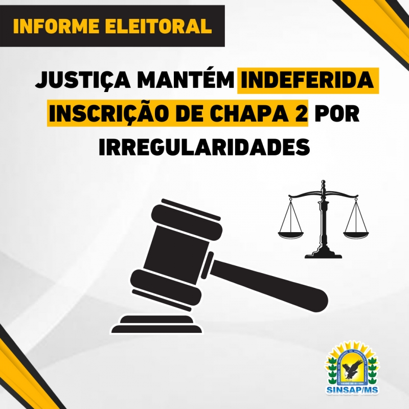 A Diretoria Executiva do SINSAP/MS, no processo de homologação das chapas, indeferiu a inscrição da “Chapa 2 - União e Trabalho” após constatar que dois integrantes não possuíam os requisitos exigidos para concorrer ao pleito.