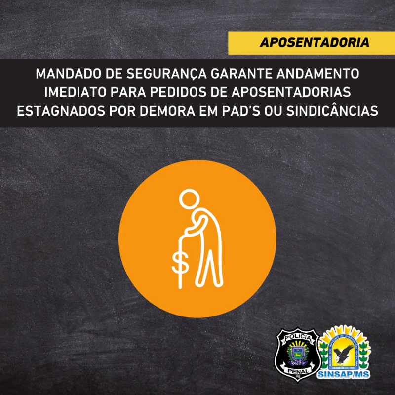 No último dia 05 de novembro de 2021, foi publicada sentença no Mandado de Segurança n.º 0820522-41.2019.8.12.0001, impetrado pelo SINSAP, para garantir que os processos de aposentadoria de seus sindicalizados tenham imediato andamento, após transcorridos 140 dias do 1º ato de instauração válida de qualquer investigação disciplinar (PAD's ou sindicâncias).