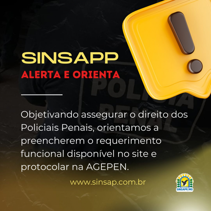 Para garantir o direito dos servidores, o SINSAPP/MS orienta preencher e encaminhar requerimento de carteira de identidade funcional com porte de arma.