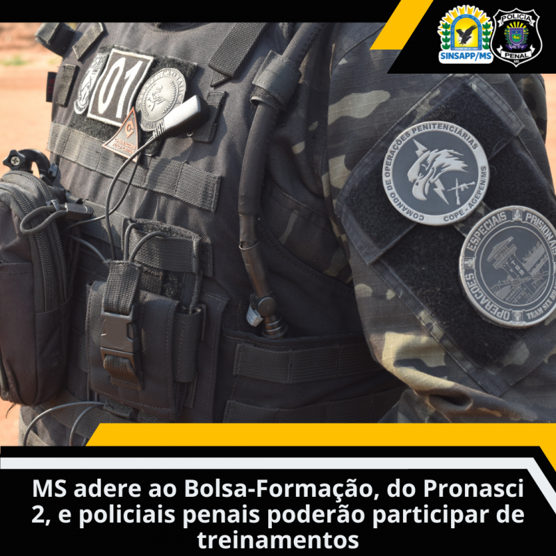 Mato Grosso do Sul aderiu ao projeto Bolsa-Formação, do Pronasci 2, que visa a qualificação profissional dos integrantes das carreiras das polícias militar, civil e penal, do corpo de bombeiros militar, dos órgãos oficiais de perícia criminal e das guardas municipais, por meio do pagamento de bolsas, no valor mensal de R$ 900,00, durante o curso, em ações estratégicas de ensino que visam aprimorar o Estado Democrático de Direito, o fortalecimento do Sistema Único de Segurança Pública (Susp) e a defesa dos direitos e garantias fundamentais, sobretudo, àqueles relativos à proteção das minorias e grupos vulneráveis.