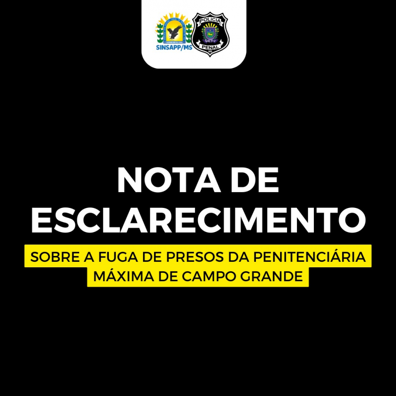 Diante da fuga de detentos da Penitenciária de Segurança Máxima de Campo Grande, o SINSAPP/MS esclarece: