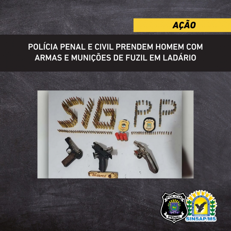 Um trabalho conjunto entre a Polícia Penal e a Polícia Civil em MS resultou na prisão de um homem de 25 anos após o cumprimento de um mandado de busca e apreensão realizado em uma residência em Ladário.