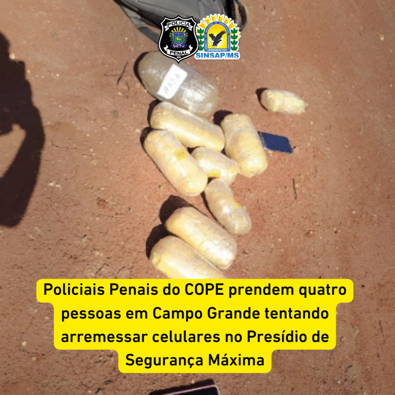 Policiais Penais do COPE (Comando de Operações Penitenciárias) prenderam quatro indivíduos que fariam arremesso de celulares e carregadores no Presídio de Segurança Máxima, em Campo Grande.