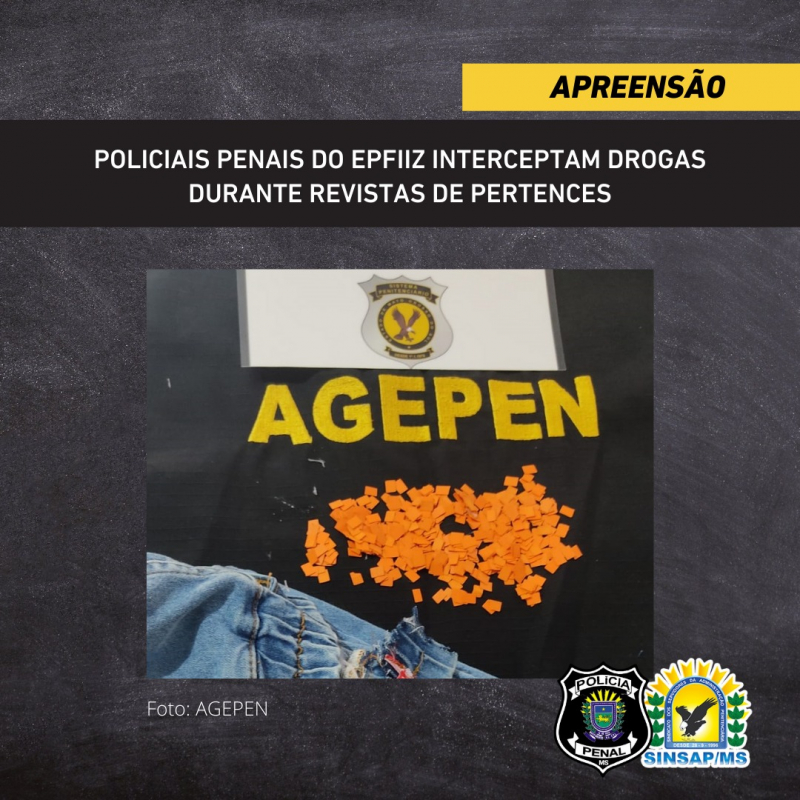 Policiais penais apreenderam, nesta quarta-feira (17.11), entorpecentes que estavam em posse de um advogado, durante a entrega de pertences no Estabelecimento Penal Feminino “Irmã Irma Zorzi” (EPFIIZ), na capital.
