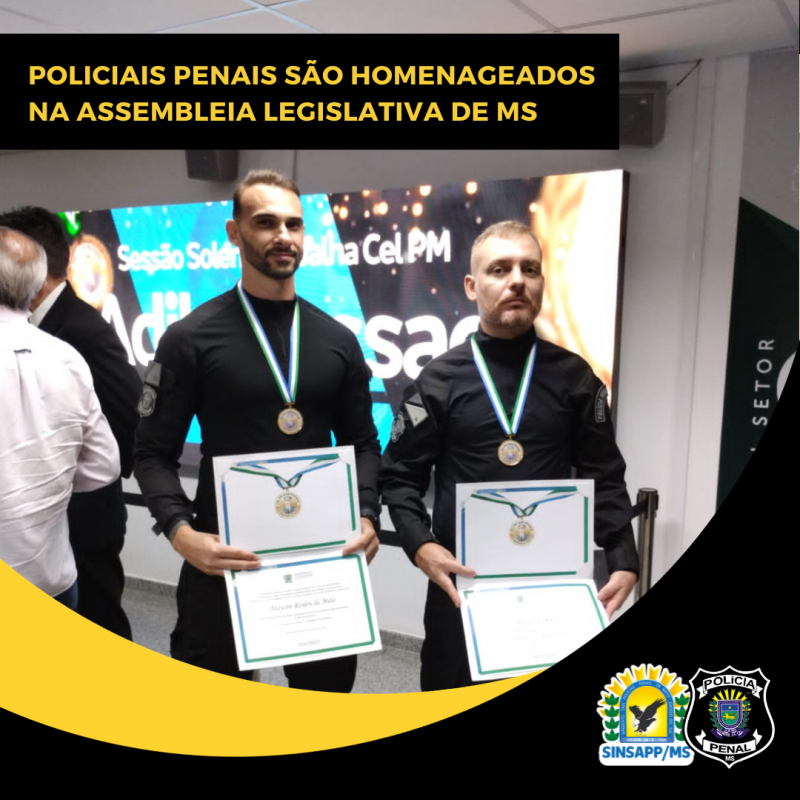 Os Policiais Penais, Maycon Roslen e Richard Dias, foram homenageados foram homenageados em sessão solene na Assembleia Legislativa de Mato Grosso do Sul, na noite dessa terça-feira (3).