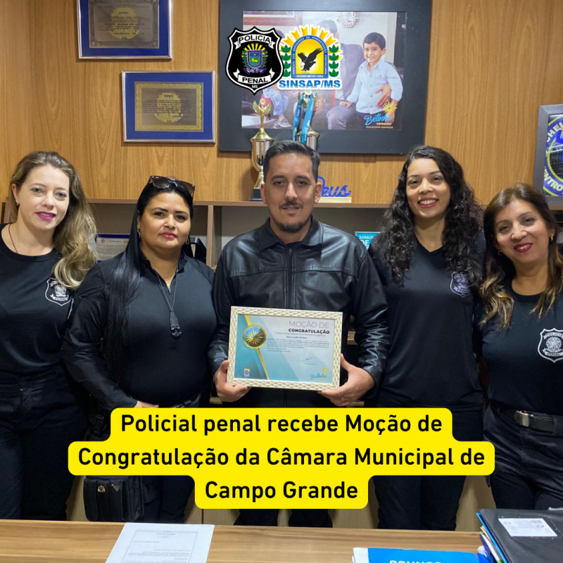 O policial penal Roby Carvalho foi homenageado com Moção de Congratulação concedida pela Câmara de Vereadores de Campo Grande, por indicação do vereador Betinho.
