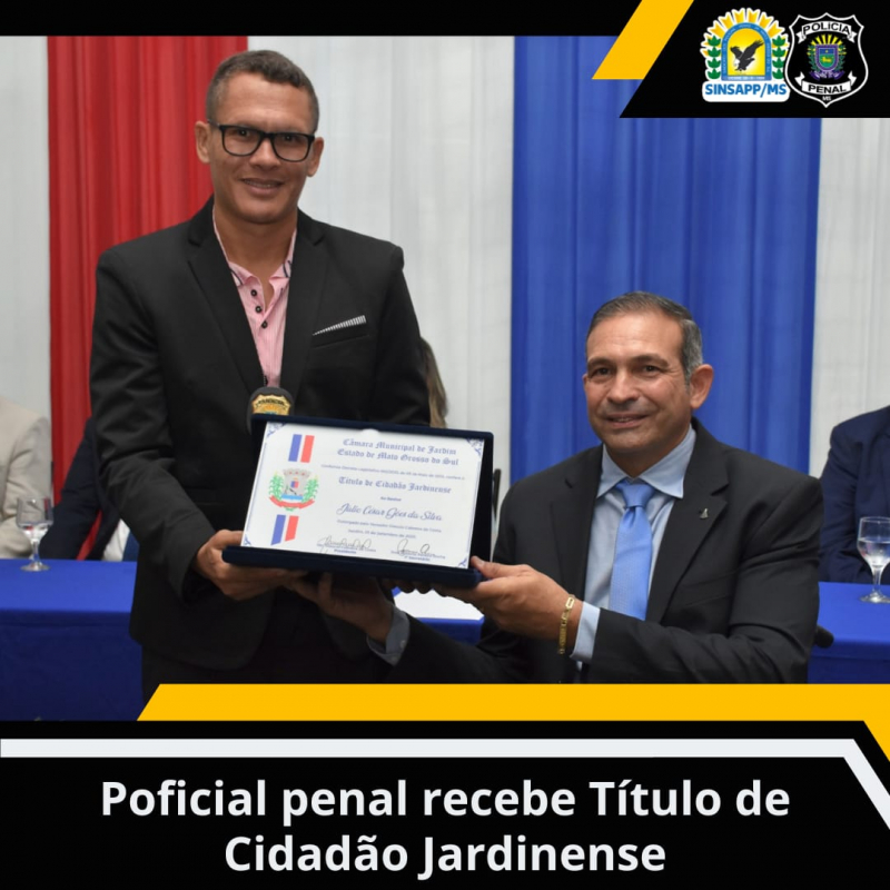 O policial penal Júlio César Góes da Silva recebeu, na última sexta-feira, o Título de Cidadão Jardinense.
