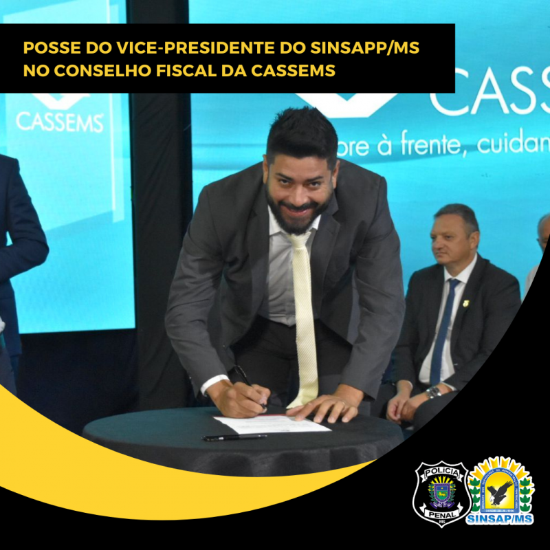 O vice-presidente do SINSAPP/MS, Hernandes Alves, tomou posse no Conselho Fiscal (Suplente) da Cassems, em solenidade realizada nesta quinta-feira (13). O novo Conselho de Administração e Fiscal foi eleito no dia 1º de março para Gestão 2023/2027, com 95% dos votos.