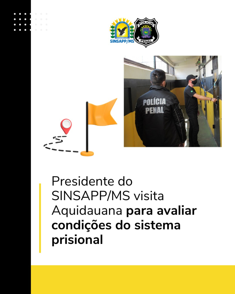 Nesta quinta-feira, 6, o presidente do SINSAPP/MS, André Santiago, esteve em Aquidauana para mais uma agenda junto aos servidores do sistema prisional. A visita teve como foco principal ouvir os policiais penais que atuam no município e verificar as condições das unidades prisionais da região.