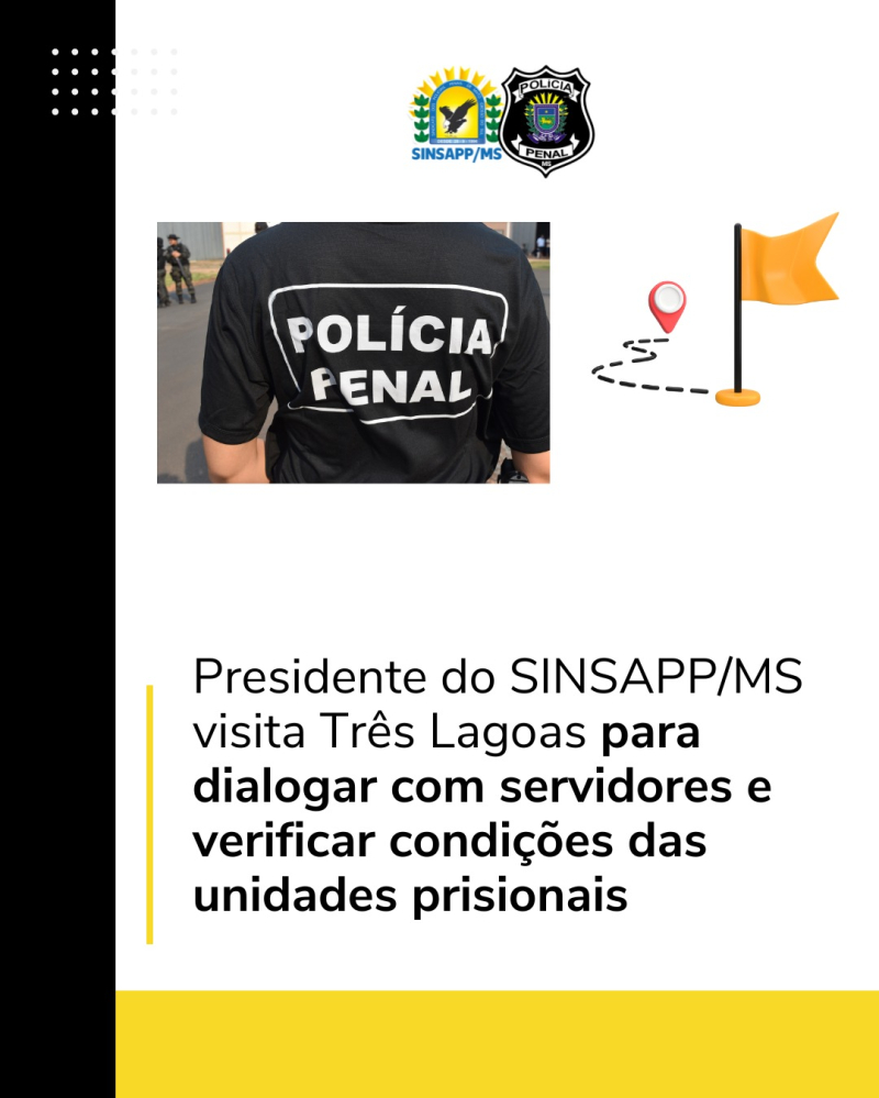 O presidente do Sindicato dos Policiais Penais de Mato Grosso do Sul (SINSAPP/MS), André Santiago, esteve em Três Lagoas nesta semana para dialogar com os servidores do sistema prisional da região e verificar de perto as condições de trabalho nas unidades. Esta foi a segunda vez que ele esteve na cidade.