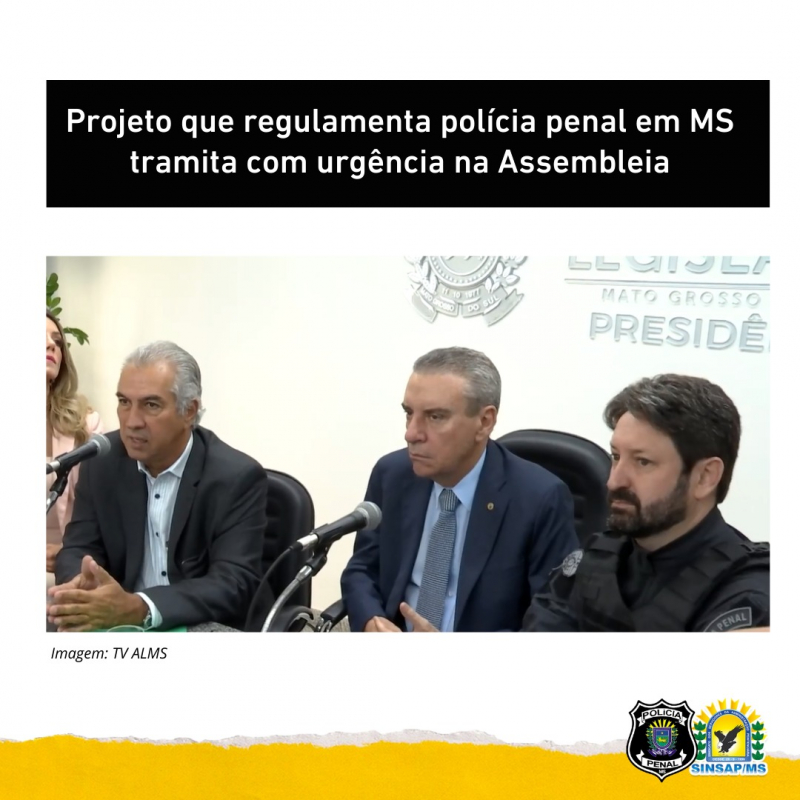 O Projeto de Lei que regulamenta a Polícia Penal em Mato Grosso do Sul, entregue pelo governado Reinaldo Azambuja dia 23 de março, está tramitando em regime de urgência na Assembleia Legislativa do estado. O texto já foi aprovado pela Comissão de Constituição, Justiça e Redação, a CCJR, e já nesta quinta, 24, foi aprovado em primeira discussão pelo Plenário da casa de leis.