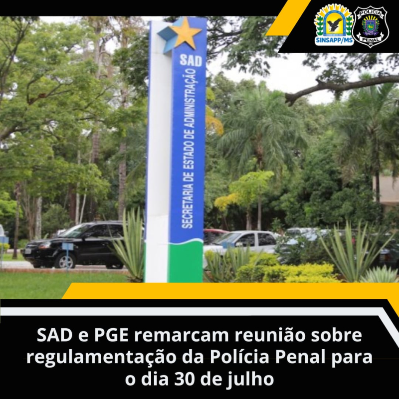 Comissão da SAD (Secretaria de Estado de Administração) que está tratando da regulamentação da Polícia Penal e a PGE (Procuradoria-Geral do Estado) solicitaram o adiamento da reunião que aconteceria na quinta-feira (18), com a justificativa de que necessitam de mais tempo para análise de alguns pontos do tema.