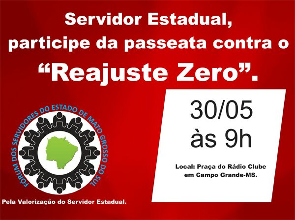 convida todos os servidores e seus familiares para a passeata contra o reajuste zero, que acontecerá