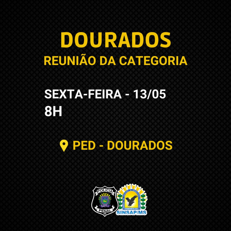 O SINSAP/MS informa aos servidores de Dourados e Região, que o Sindicato realizará uma reunião nesta sexta-feira (13), às 8h, na PED.