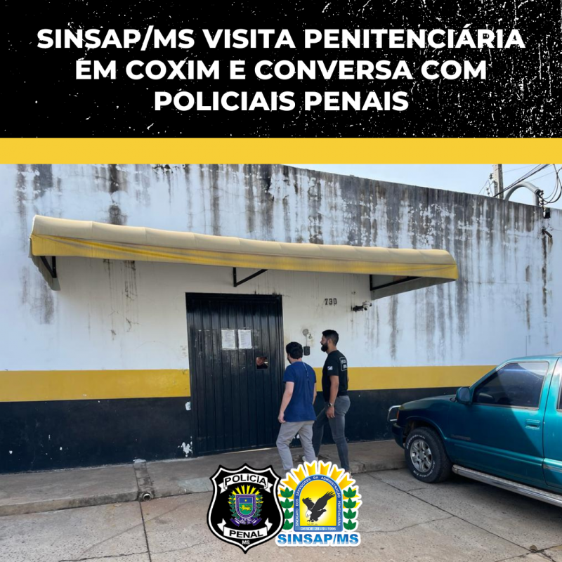 A diretoria do SINSAP/MS esteve em Coxim, na última semana. O presidente e o vice-presidente do SINSAP/MS, André Santiago e Hernandes Alves, respectivamente, além do diretor jurídico, Lourival Mota, estiveram no Estabelecimento Penal masculino de Coxim, onde conversaram com os policiais penais que estavam de serviço.