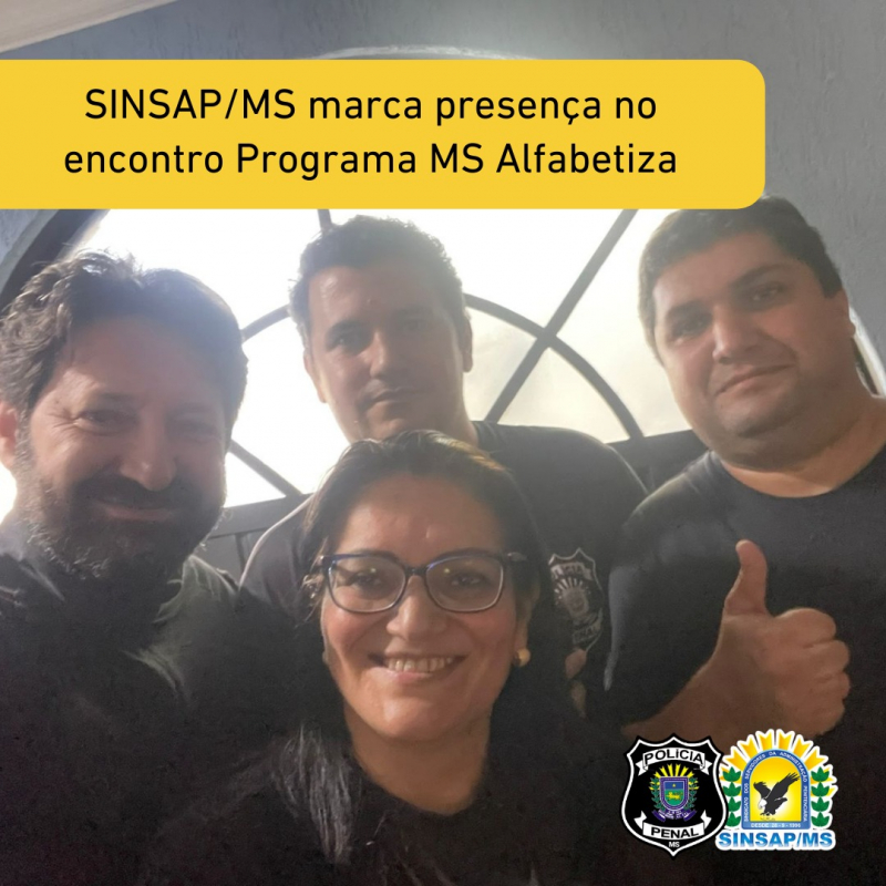 A diretoria do SINSAP/MS e Policiais Penais estiveram presentes no encontro Programa MS Alfabetiza, nesta terça-feira, 05.