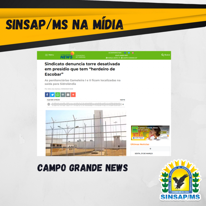 Confira a matéria completa: https://www.campograndenews.com.br/cidades/capital/sindicato-denuncia-torre-desativada-em-presidio-que-tem-herdeiro-de-escobar.