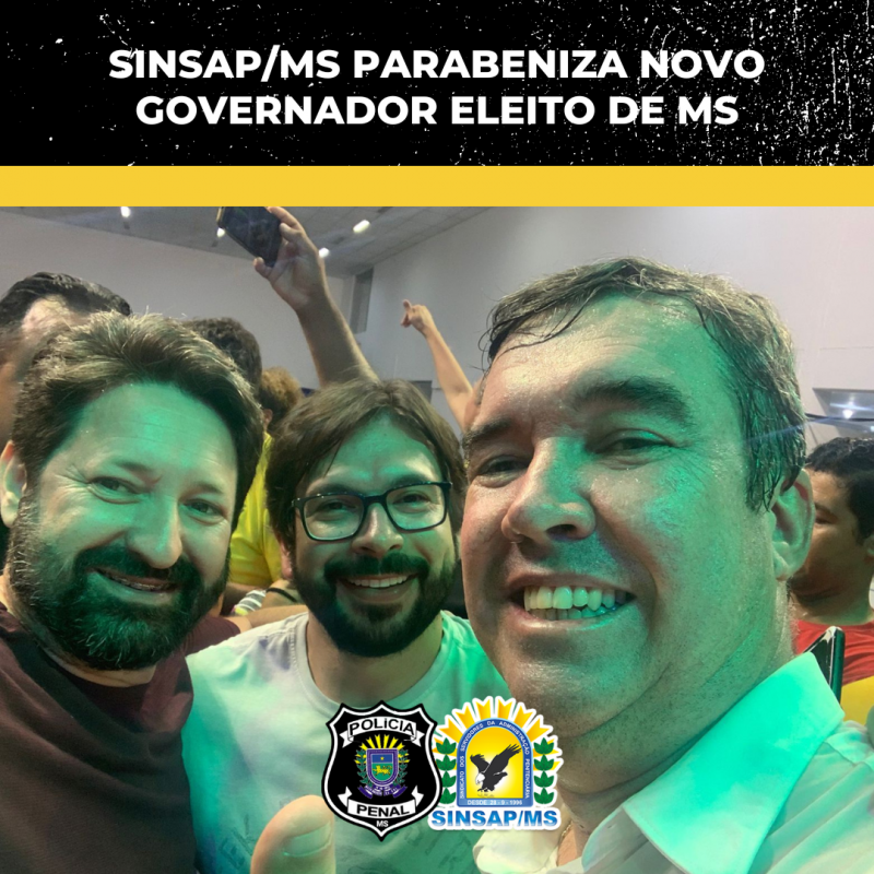 O presidente do SINSAP/MS, André Santiago, esteve com o novo governador eleito de MS, Eduardo Riedel, na noite de ontem, após ele ser declarado o vencedor das eleições, para parabenizá-lo.