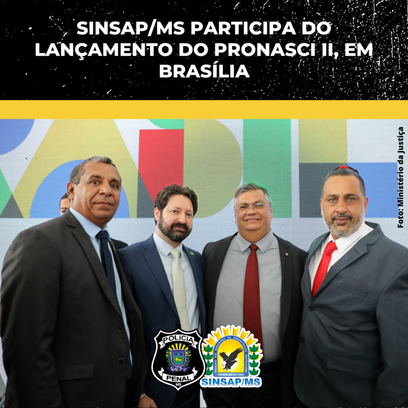 O presidente do SINSAP/MS, André Santiago, participou, na quarta-feira (15), do lançamento do Pronasci II (Programa Nacional de Segurança com Cidadania), em Brasília. O programa foi lançado com a presença de autoridades, movimentos sociais e representantes da segurança pública.