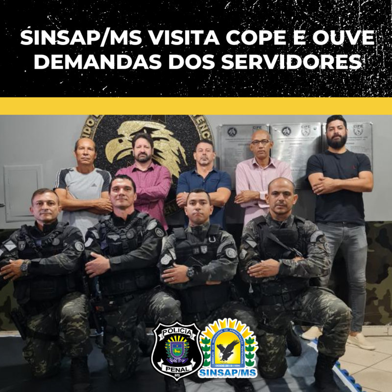 O SINSAP/MS esteve, nesta semana, no COPE (Comando de Operações Penitenciárias) para ouvir as demandas dos servidores. Além de verificar a situação em que se encontram, o Sindicato falou sobre as ações que tem encabeçado em prol de melhorias para a Polícia Penal de Mato Grosso do Sul.
