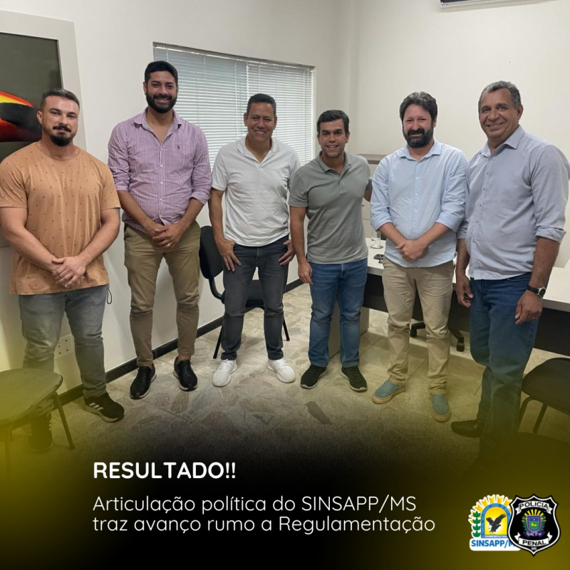 Durante a reunião, os representantes do SINSAPP/MS apresentaram ao parlamentar os principais pontos que envolvem a regulamentação da Polícia Penal, destacando a importância de se reconhecer legalmente a atividade desempenhada pelos agentes penitenciários.