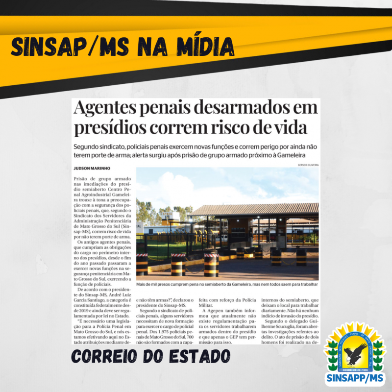 Prisão de grupo armado nas imediações do presídio semiaberto Centro Penal Agroindustrial Gameleira trouxe à tona a preocupação com a segurança dos policiais penais, que, segundo o Sindicato dos Servidores da Administração Penitenciária de Mato Grosso do Sul (Sinsapp-MS), correm risco de vida por não terem porte de arma.