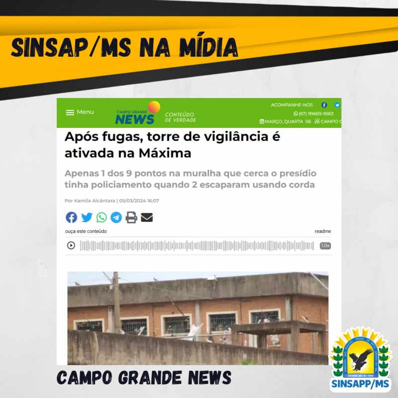 Confira a matéria na íntegra: https://www.campograndenews.com.br/cidades/capital/apos-fugas-torre-de-vigilancia-e-ativada-na-maxima