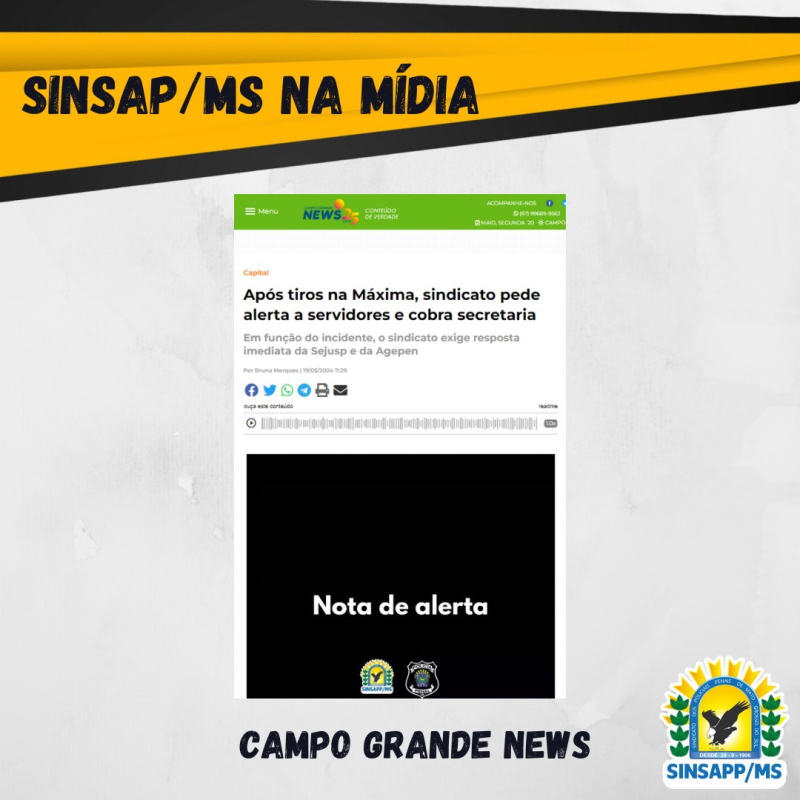 Trecho da nota emitida pelo SINSAPP/MS (Sindicato dos Policiais Penais de Mato Grosso do Sul) diz: “Em função desse incidente, o sindicato exige uma resposta imediata da Sejusp e da Agepen (Agência Estadual de Administração do Sistema Penitenciário), visando a segurança de todos os servidores. O sindicato está comprometido em acompanhar o caso de perto e exigirá medidas efetivas para prevenir novos incidentes”, informou