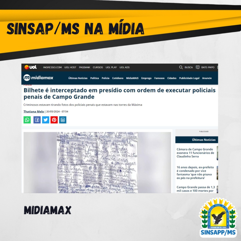 Confira a reportagem completa: https://midiamax.uol.com.br/policia/2024/bilhete-interceptado-em-presidio-tinha-ordem-de-executar-policiais-penais-em-campo-grande/