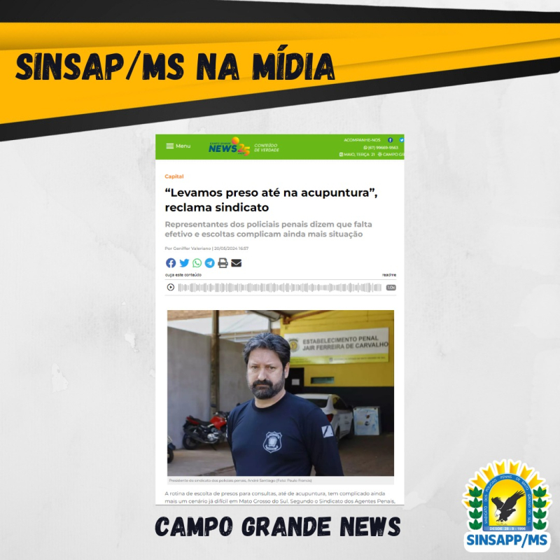 A rotina de escolta de presos para consultas, até de acupuntura, tem complicado ainda mais um cenário já difícil em Mato Grosso do Sul. Segundo o Sindicato dos Policiais Penais, esse tipo de deslocamento deixa a segurança dos presídios desfalcada, facilitando a ação de bandidos, inclusive, contra os próprios servidores. O problema é intensificado com a falta equipamentos como colete balístico, reclama o presidente do sindicato dos policiais penais, André Santiago.