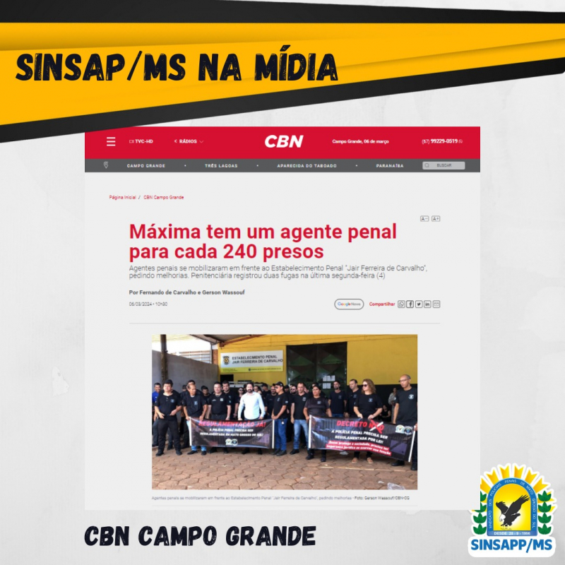 De acordo com o presidente do Sindicato dos Servidores da Administração Penitenciária de Mato Grosso do Sul (Sinsapp/MS), André Santiago, a situação da máxima é crítica e, por conta da jornada exaustiva, muito servidores tem adoecido. "Nós temos 10 servidores somente de plantão para cuidar de 2.400 detentos. Na divisão dos postos, que são importantes, nós temos uma realidade absurda, que é um servidor, dentro do pavilhão, cuidando de 900 detentos. Tirando a Penitenciária de Dourados, nenhuma do interior tem 900 detentos. A realidade da máxima é absurda", afirmou.