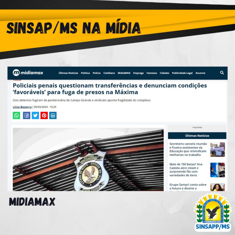 Por meio de nota enviada ao Jornal Midiamax, o sindicato expõe a fragilidade do complexo penal da Máxima. A entidade cita o aumento da jornada de trabalho, a sobrecarga dos policiais penais – com plantão de 11 agentes para cuidar de 7 mil detentos -, a localização da penitenciária e o motivo de detentos com históricos de tentativas de fugas serem transferidos para a Máxima.