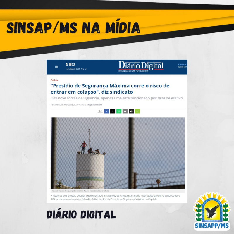 Segundo André Luiz Santiago, presidente do Sinsapp/MS (Sindicato dos Policiais Penais de Mato Grosso do Sul), relata que atualmente são 2,4 mil presos e apenas 11 agentes trabalhando na segurança do local que conta com nove torres, mas apenas uma está funcionando.