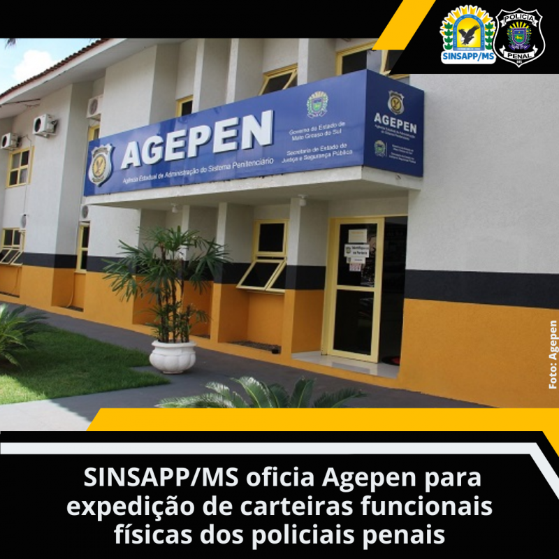 O SINSAPP/MS, em ofício, voltou a requerer da Agepen (Agência Estadual de Administração do Sistema Penitenciário) a expedição das carteiras funcionais físicas dos policiais penais sul-mato-grossenses.