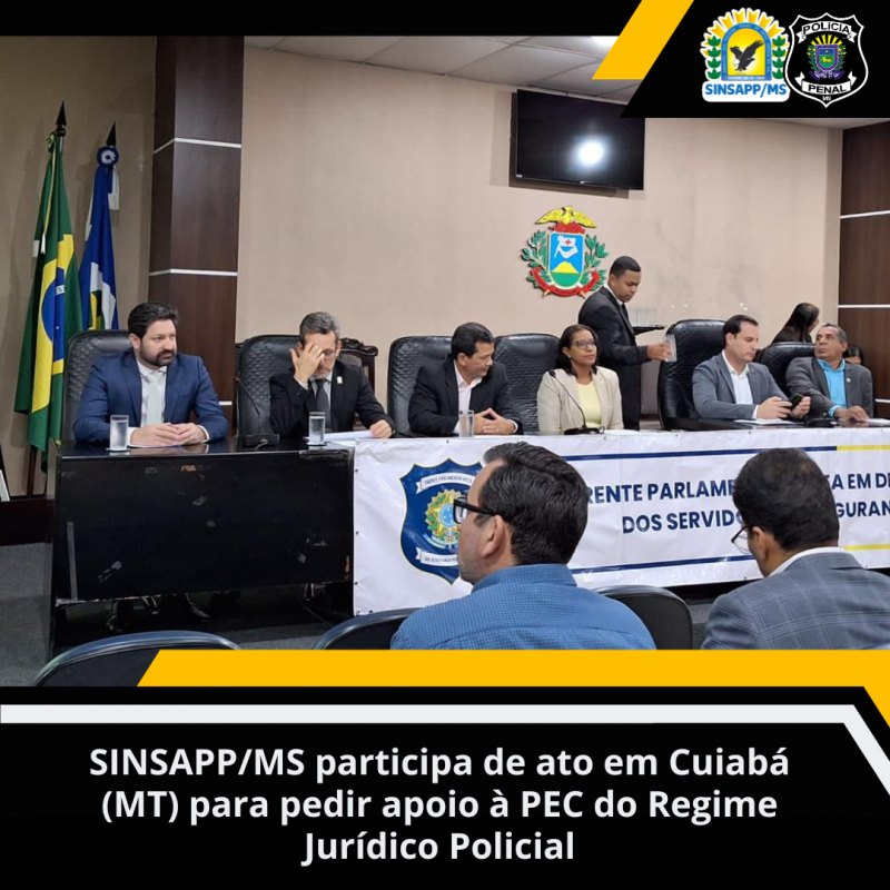 O SINSAPP/MS participou, nesta quinta-feira (14), de um seminário da Frente Parlamentar Mista em Defesa e Valorização dos Servidores da Segurança Pública Civil, em Cuiabá. Na ocasião, foi lançado o documento, assinado por mais de 15 entidades, que busca apoio parlamentar à PEC (Proposta de Emenda à Constituição) do Regime Jurídico Policial.