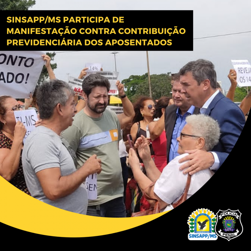 O SINSAPP/MS participou, na manhã de hoje, de uma manifestação contra a cobrança previdenciária dos aposentados. O ato aconteceu em frente ao Bioparque Pantanal e reuniu servidores de diversas categorias, entre elas os policiais penais.