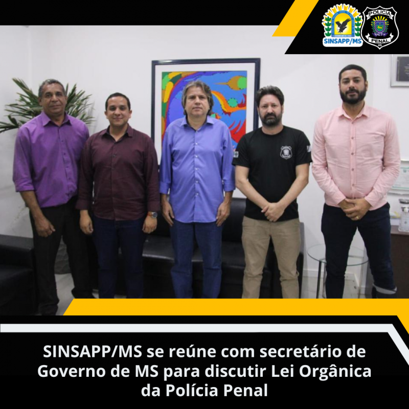 O SINSAPP/MS e a FENASPPEN se reuniram, na terça-feira, com o secretário de Governo e Gestão Estratégica de Mato Grosso do Sul, Pedro Caravina, para discutir a construção da Lei Orgânica da Polícia Penal no Estado e outras especificidades da carreira dos policiais penais. O policial penal e vereador de Bataguassu, Cleyton Rodrigo da Silva, também participou do encontro.