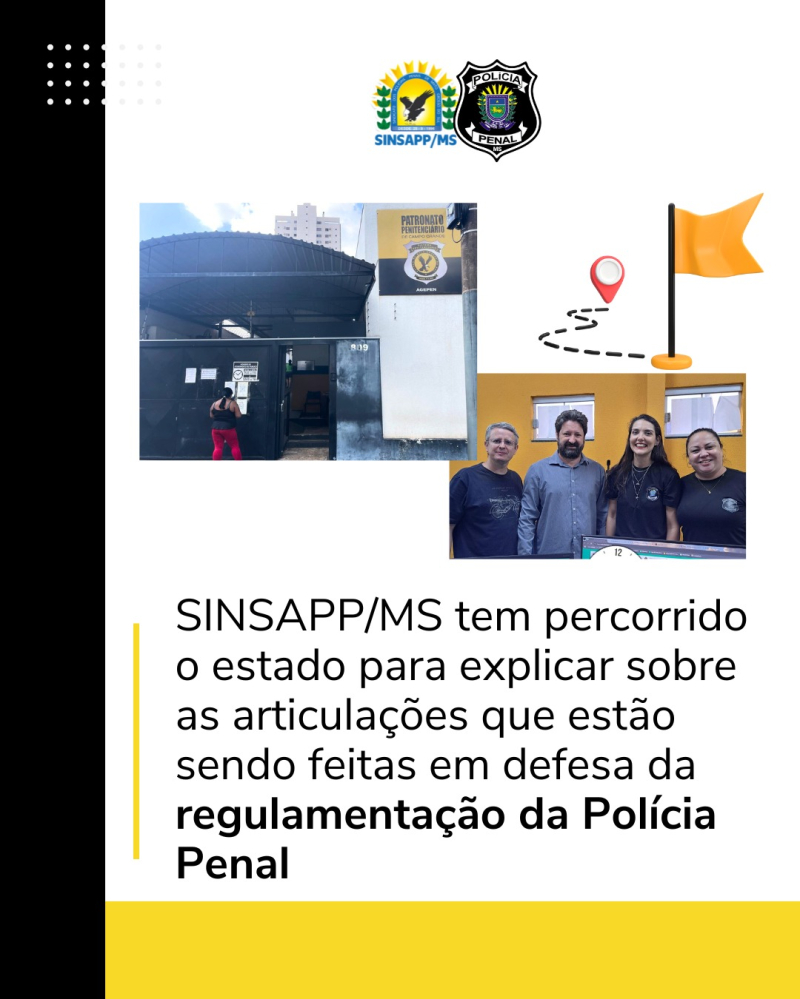 O SINSAPP/MS já iniciou, neste ano, as reuniões com os Policiais Penais para explicar sobre as articulações que estão sendo feitas em defesa da regulamentação da Polícia Penal. Foi feita reunião com os profissionais de Corumbá, Três Lagoas e nesta tarde com os que trabalham no Patronato de Campo Grande.